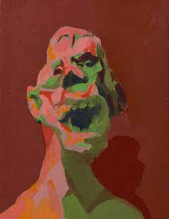 Jonathan Schreyer is channeling the artist Francis Bacon. Schreyer’s piece, Final Breath, is powerful in the way he uses paint and color while capturing the interior life of the person he’s portraying. In Final Breath, Schreyer forces us to glimpse at what that might look like with the contour of a man’s face painted green, as the man is exhaling his last breath, perhaps a scream. There’s sadness in this man’s eyes, in the use of unnatural colors such as bright orange and atomic greens. The mouth on the man is cavernous – one could imagine falling into that darkness. Schreyer’s portraits have the ability to look beyond the surface and to see what is in the soul and spirit. His work is brave and shows a knowing and wisdom of what it means to be human.