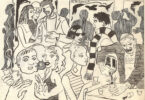 Their situation may be ambiguous, but not the artist’s palette. This painting is all about color. No skin tone is simple. No lipstick is just bright red. Each shade has subtle variations and depth. Eyebrows might be green brown or black, but they are arched and elongated individually. What this demonstrates is the artist’s perfectionism in creating specific characters in striking colors whose inner dramas are hidden from us.