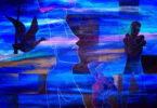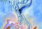 The same is true for “Emergency” (2017). Two young women lean against each other. Their situation is unfathomable. They are beautiful, rosy cheeked with red lips and long golden and bright red-orange hair. Whatever they are enduring on this lonely voyage, perhaps on a ship, we never learn.