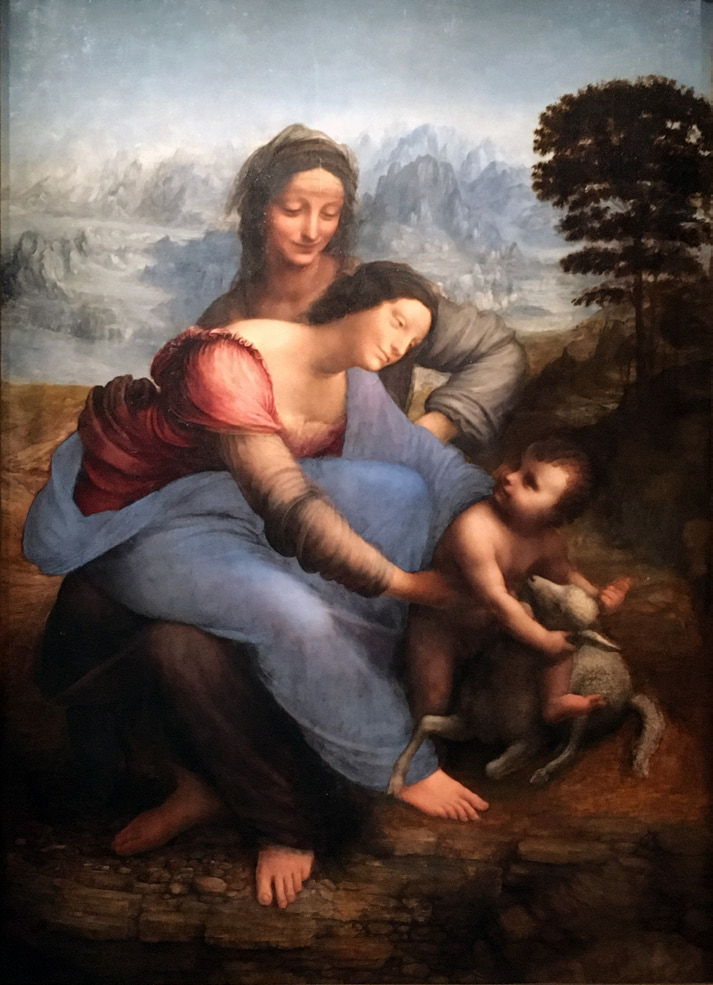 As tourism expanded over the last 50 years, and after several people attacked the painting with a rock, paint and a piece of cake (!), the Louvre had to move the Mona Lisa to a larger space and protect it with safety glass. Every visitor to the Louvre—from all over the world—finds it. Most try taking a ‘selfie’ with her. Yet the other four works there by da Vinci hardly draw a crowd, although guides stop in front of them with their small groups.