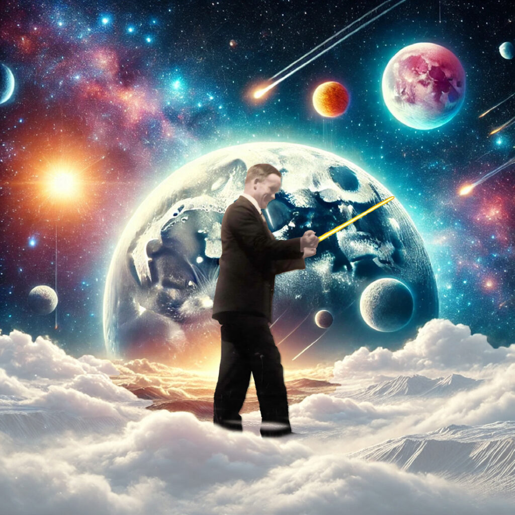 The President of the Universe loved music. In fact, music was one of the things for which he was most grateful to human beings. Yes, they caused wars.