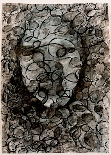 Polymath artist-poet-writer Cristina Querrer’s images keep viewers’ eyes on the move, so we are challenged to decipher the busy network of scribbles she draws—or is that writes?—as they coalesce to form, say, a human face (Shadow Work). “My work navigates the space between presence and absence, where remnants of time are bound together, reconstructed, or left unraveling.”