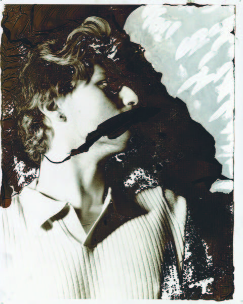 Those images were captured by Querrer’s fellow MFA candidate, Tony DeZinno, an accomplished photographer who is equally at home chronicling his fellow creatives—particularly performing artists—and manipulating his own images to create layered artworks with built-in drama. The performative aspect to DeZinno’s work takes center stage in the archival inkjet print A Silent Voice, portraying, in black and white, a person in profile, their mouth “canceled” by a black swath of ink: a study in censorship … or perhaps involuntary self-negation?