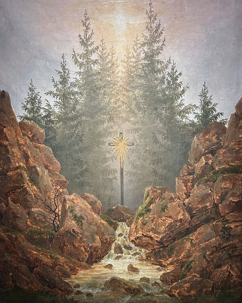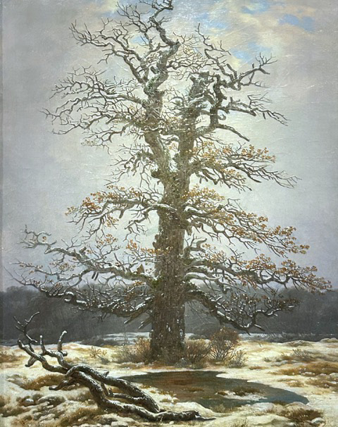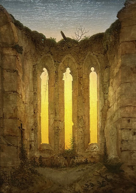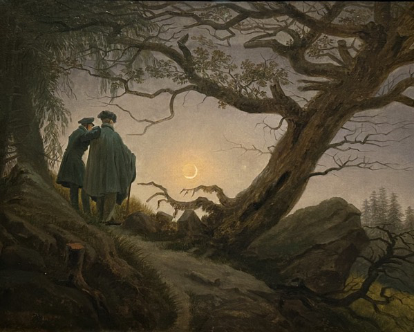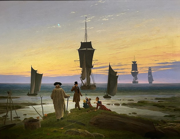 So, walking through—and contemplating—the Metropolitan Museum of Art’s 2025 retrospective of the 19th century painter Caspar David Friedrich affirmed my belief that his work remains a brilliant embodiment of the key elements of Romanticism. Living from 1774 to 1840, Friedrich was born in the town of Greifswald on the Baltic Sea, studied art in Copenhagen from 1794-1798, settled in Dresden, and married quite happily at the age of 44, eventually becoming a father of three. He was primarily a landscape painter with his work conveying a subjective, emotional response to the natural world. As William Vaughan says in his 2004 biography of the artist, “[Friedrich] sought to present nature as a divine creation to be set against the artifice of human civilization.”