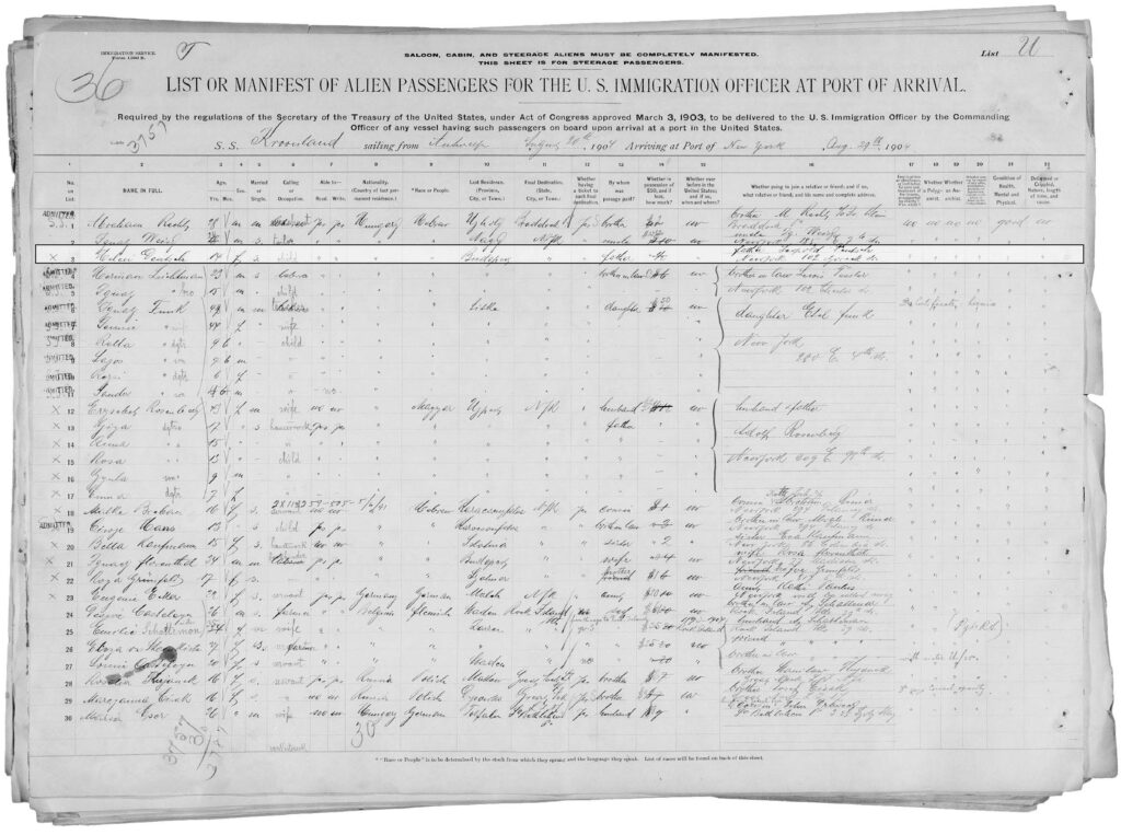 “When I got off the boat, they took me into a building, and they put me in a cage. Like an animal I was, in a wire cage! And there I had to wait until my sister, Rose, the one who made the pink dress for me, and my brother, Louis, came to redeem me. They had come to America with my family when I wasn’t allowed to get on the ship. And my sister said, ‘Where is your luggage, where is evertthing?’ You were supposed to have $10 to go through immigration. I heard if someone had it they would go through and then pass the $10 bill to the person behind them in the line and the same $10 bill would go all the way down the line. If you didn’t have that you needed to have something valuable. I told her what I did with it, that I threw it overboard. So she took off a ring from her finger and put it on me and gave me her pocketbook. She was always so wonderful to me. So, I had something, and I went through immigration.