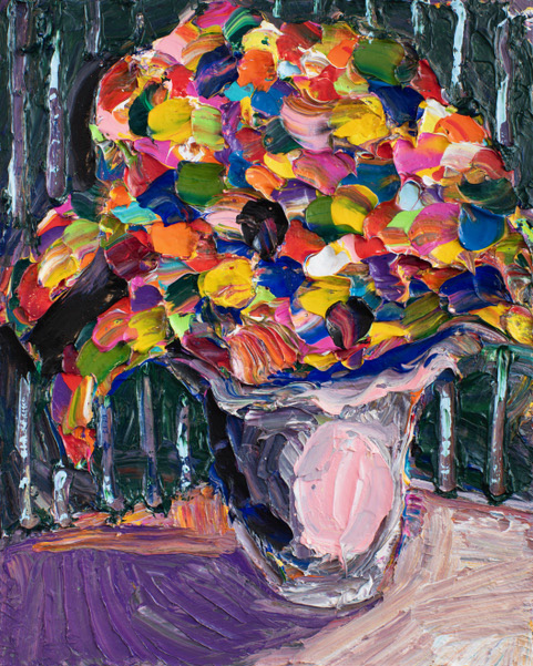 The evolving body is not Park’s sole subject; flowers are also a favorite. Capturing flowers has herstorically been a forte of the female artist. Perhaps more than their evolving self-portraits, Park’s flower paintings prove that the longed-for transition is as good as real; that the artist’s sheer imaginative force conquers any inconvenient physical fact.