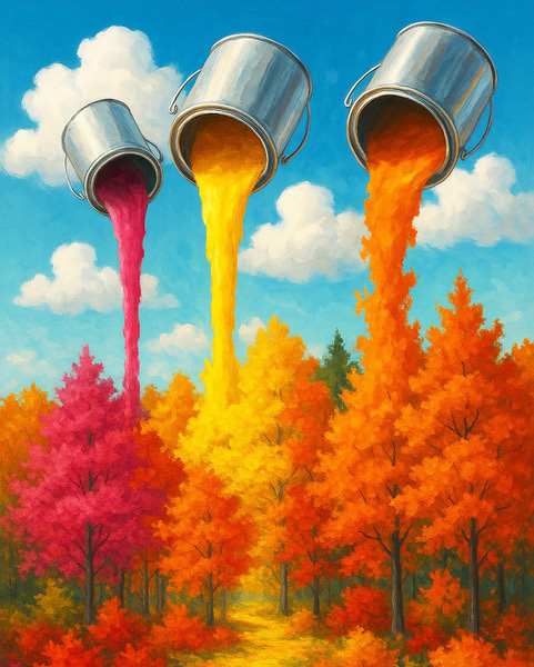 Happenstantially…since all stories that begin “Once upon a time” are happenstantial, these events transpired at the very instant that summer was supposed to turn into winter. That transformation, however, was delayed, because the earth was far too busy absorbing an avalanche of paint.