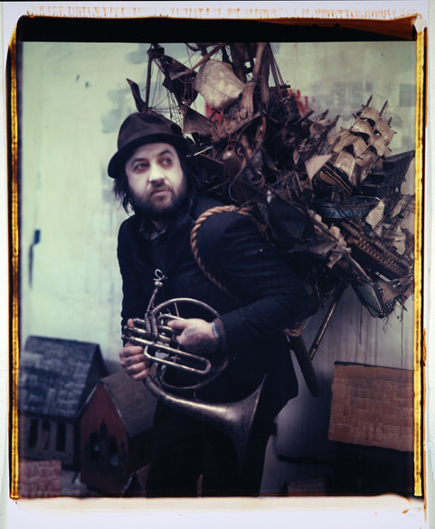 with handmade frames constructed from found objects. “I was mixing it all together to create my own mythologies,” Hochbaum says.