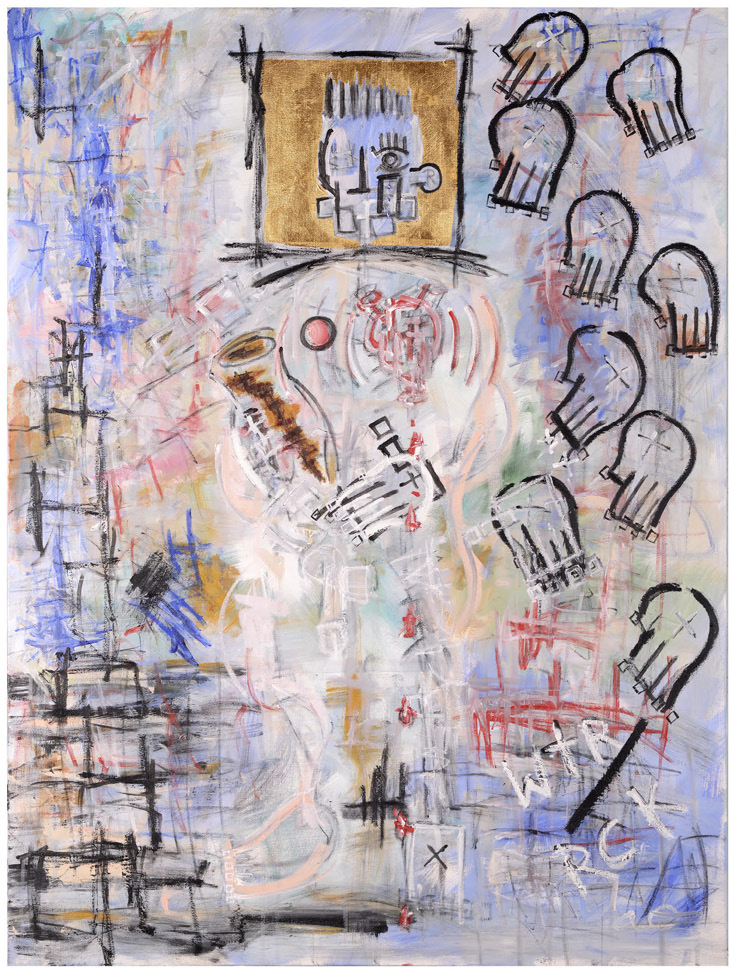 He also explains that a crown in his works stands for legacy, while forks and spoons, allusions to Munch and John’s expressionism, conjure tactile sensations of pleasure, taste, sex and fertility.