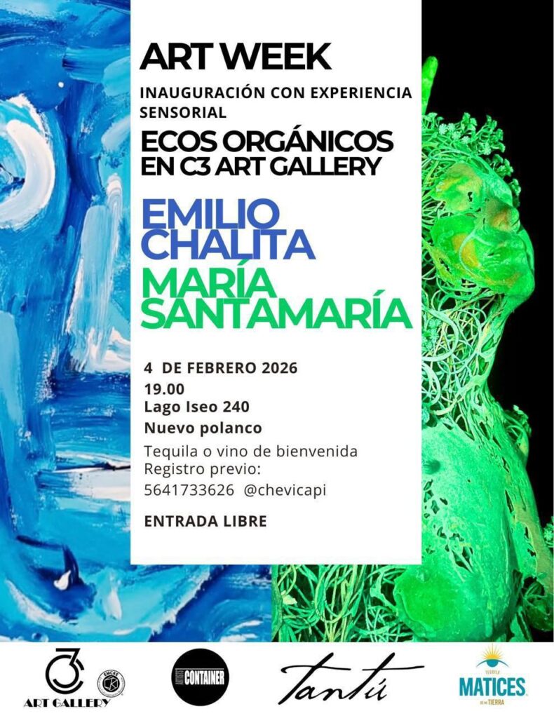 “Ecos Organicos/Organic echoes”: sensory experience, music, drink, catwalk, art, installation, performance and party awaits you on Wednesday, February 4 within the framework of Art Week with the inauguration of the works of two artists María Santamaría and Emilio Chalita.
