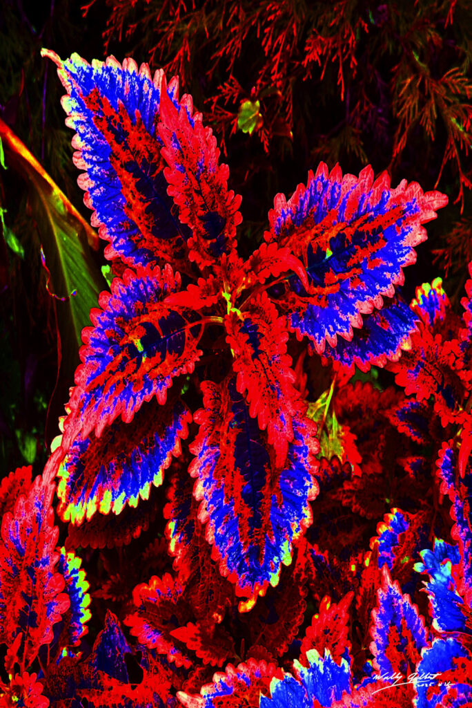 Among the many exuberant works of art in the Viridian exhibition was Red and Blue Leaves, a picture of a plant where the colors are taken to 100% saturation.