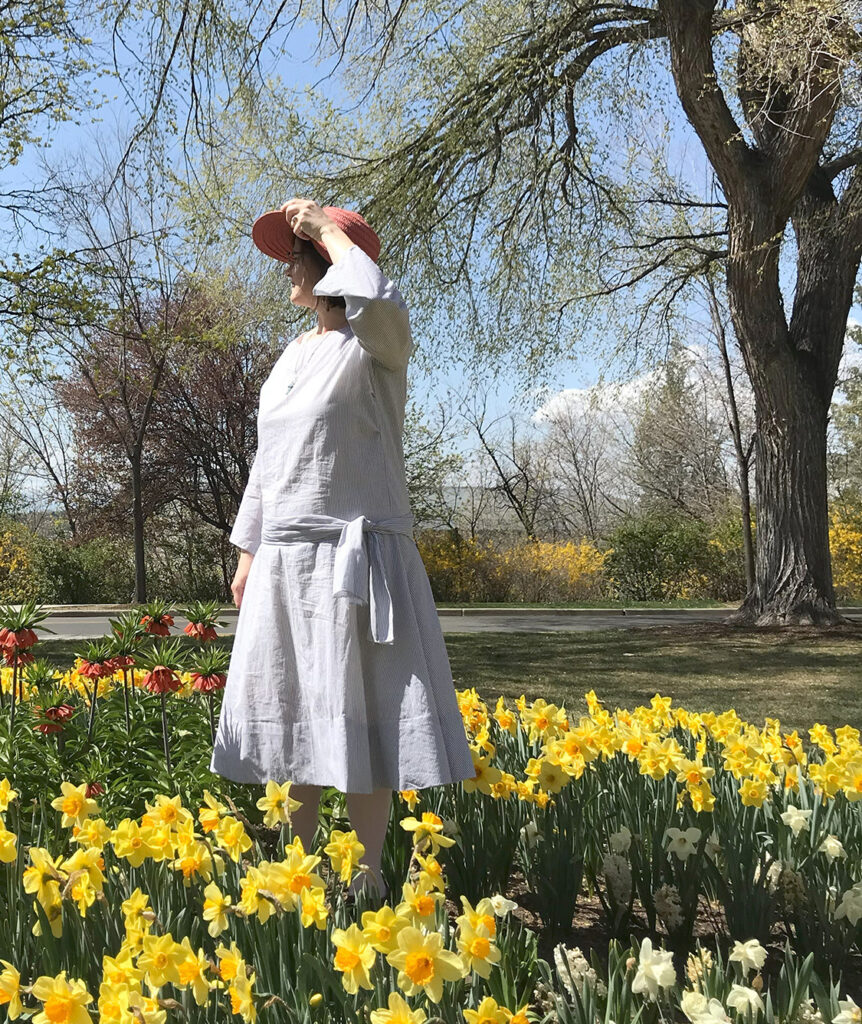Wearing historic clothing changes how you feel; certainly when you’re wearing period-accurate underclothing, such as shifts and corsets or stays, but also without. I made myself two 1910s corsets, and would wear them with the clothing I’d made. But the clothing is such that it looks good over modern underwear, and this is how I wear it most of the time.